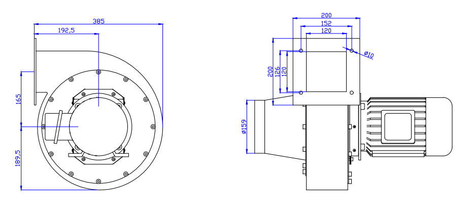 盛馳低壓耐溫風(fēng)機尺寸示意圖