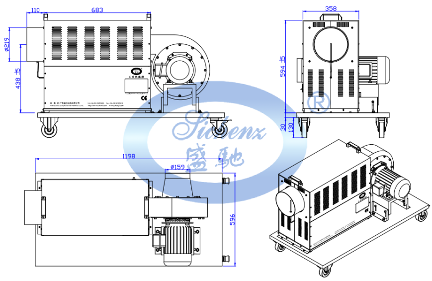 盛馳循環(huán)型熱風(fēng)機(jī)B型尺寸